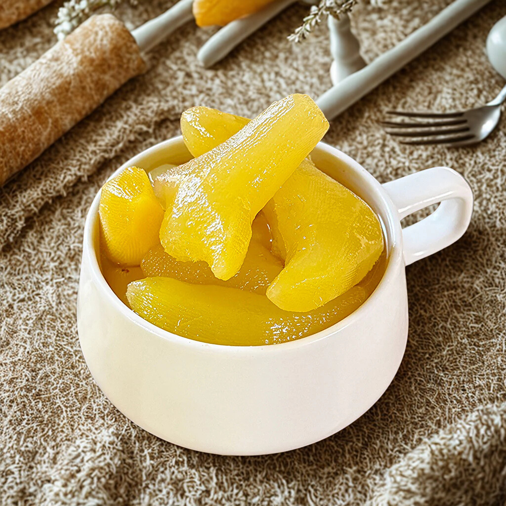 Ginger Murabba (Adrak ka Murabba) is a traditional Pakistani sweet preserve made from fresh, thinly sliced ginger simmered gently in pure sugar syrup. The result is a perfectly balanced combination of sweetness and spice, delivering warmth, energy, and a comforting aroma. Known for its soothing properties, this murabba has long been cherished in desi households for both its taste and natural wellness benefits.
